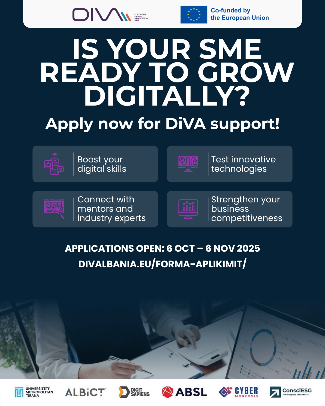 University Metropolitan Tirana Driving Digital Transformation for SMEs through Digital Valley Albania (DiVA) European Project Read More »
